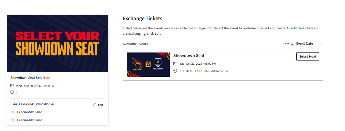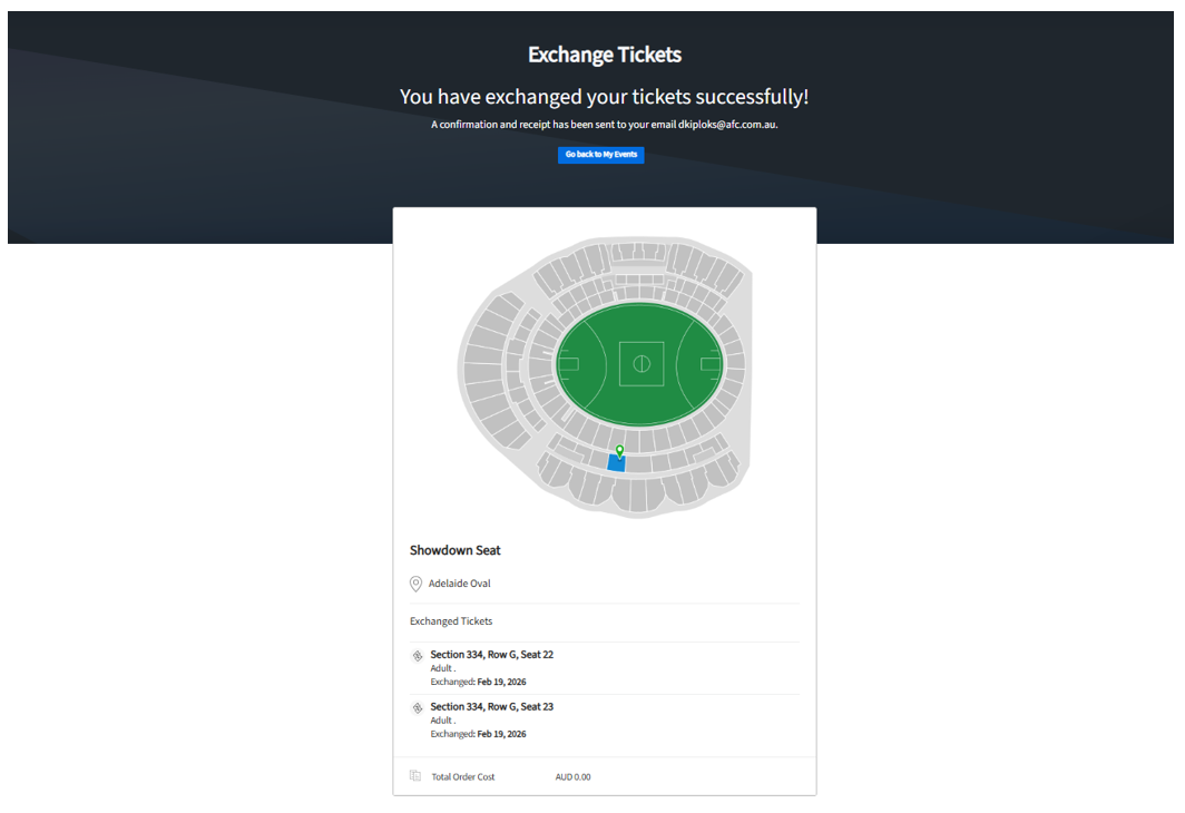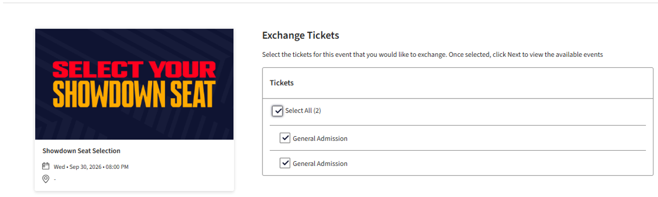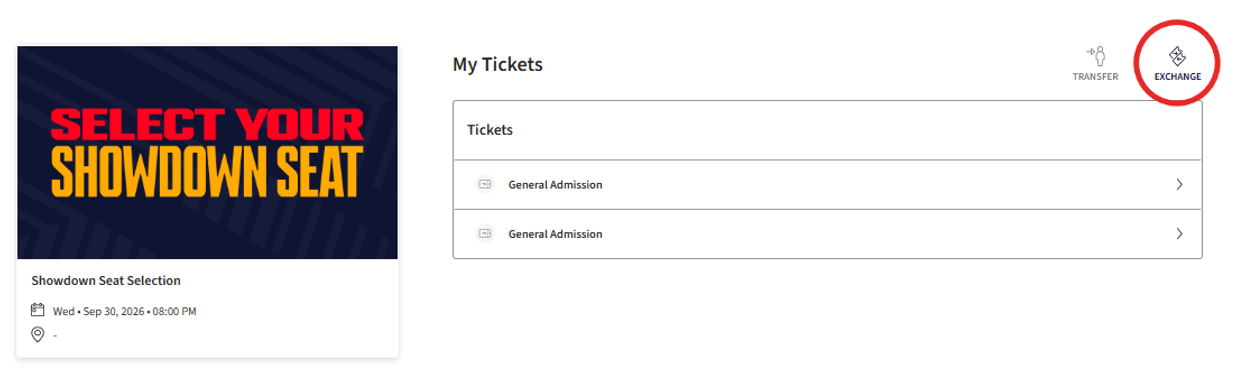 Step 3: Click Exchange and tick the General Admission product to exchange to a new seat.