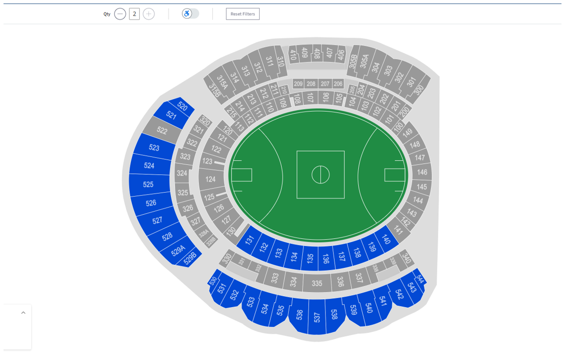 Step 5: Select your seat/s from available options (highlighted in blue)