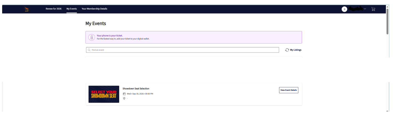 Step 2: Click View Event Details on the event marked as Showdown Seat Selection